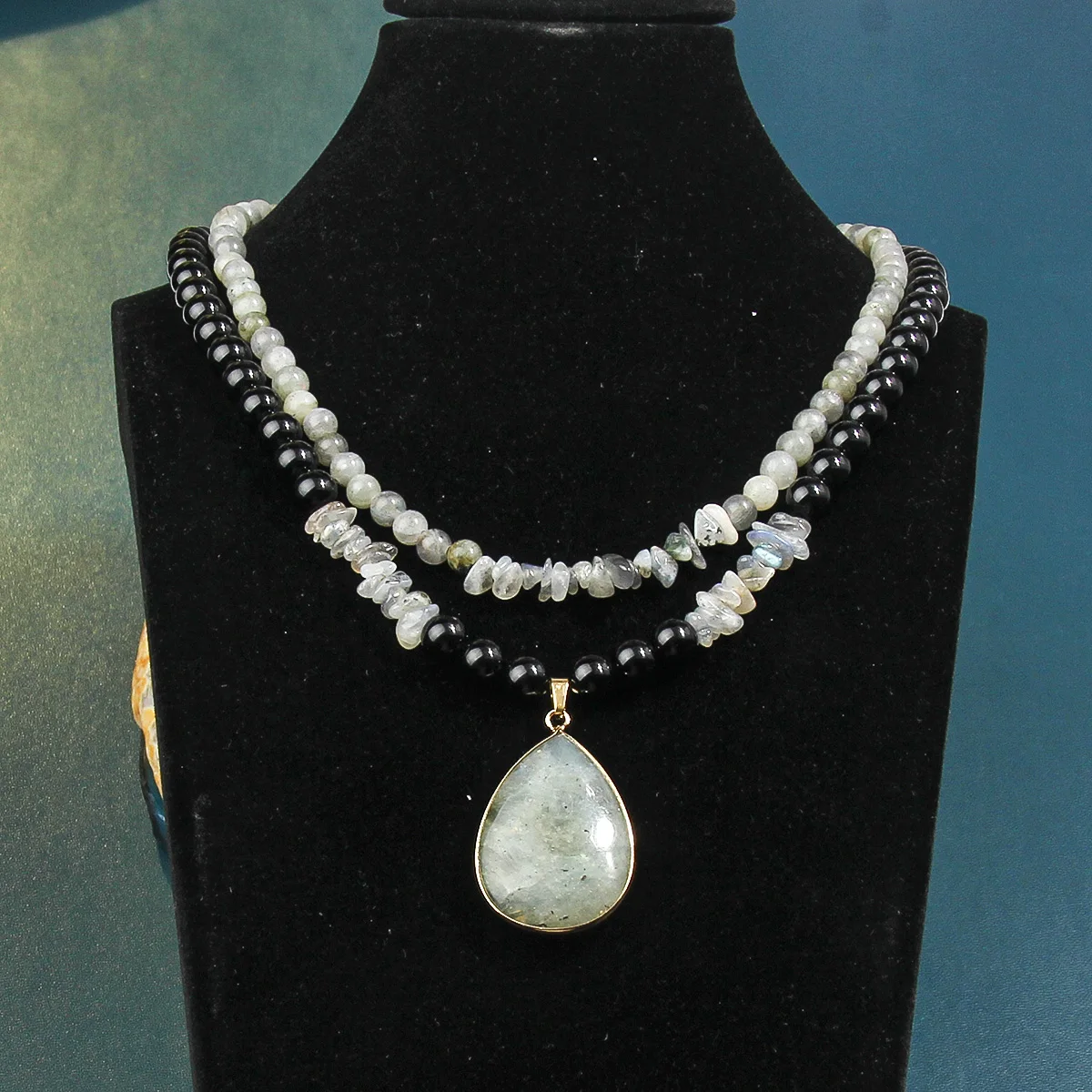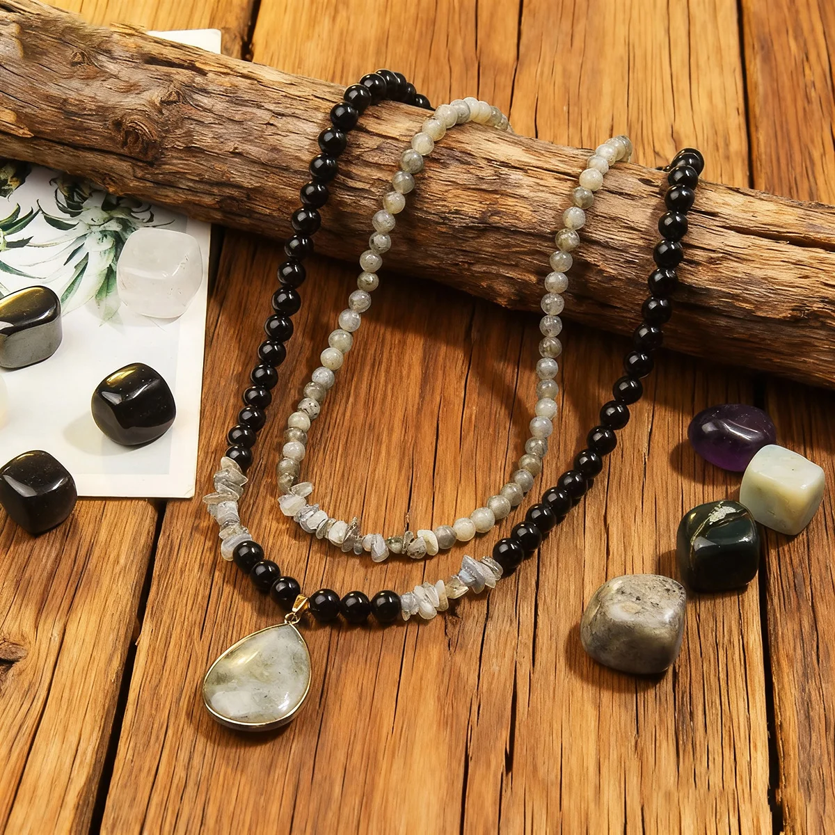 Name: Fashionable and minimalist black&white natural stone bead necklace handmade adjustable long necklace